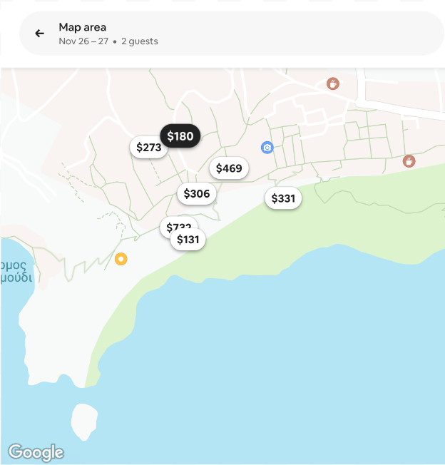 In our next iteration of modeling user attention, we separate the map pins into two tiers. The listings with the highest booking probabilities are displayed as regular oval pins with price. Listings with comparatively lower booking probabilities are displayed as smaller ovals without price, referred to as mini-pins (Figure 5). By design, mini-pins draw less user attention, with click-through rates about 8x less than regular pins.