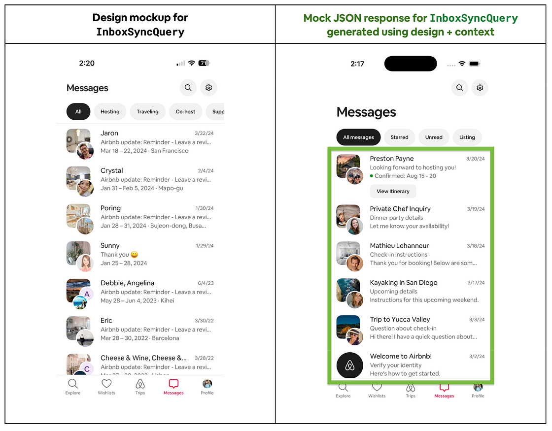 In this post, we’ll explore how we’ve reimagined mocking GraphQL data at Airbnb by combining GraphQL validation, rich product and schema context, and LLMs to generate and maintain convincing, type-safe mock data. Our solution centers around a simple new GraphQL client directive — @generateMock — that engineers can add to any operation, fragment, or field. This approach eliminates the need for engineers to manually write and maintain mocks as queries evolve, freeing up time to focus on building the product.