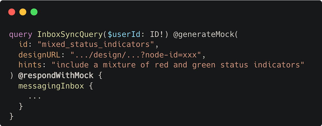 In addition to generating realistic mock data with @generateMock, we also wanted to empower client engineers to iterate on features without waiting for the backend server implementation. A second directive, @respondWithMock, works alongside @generateMock to make this possible: